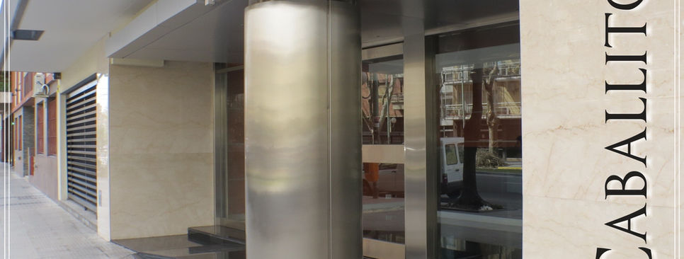 Imponente Hall de Entrada con revestimientos en cristal, madera, acero inoxidable y granítico.